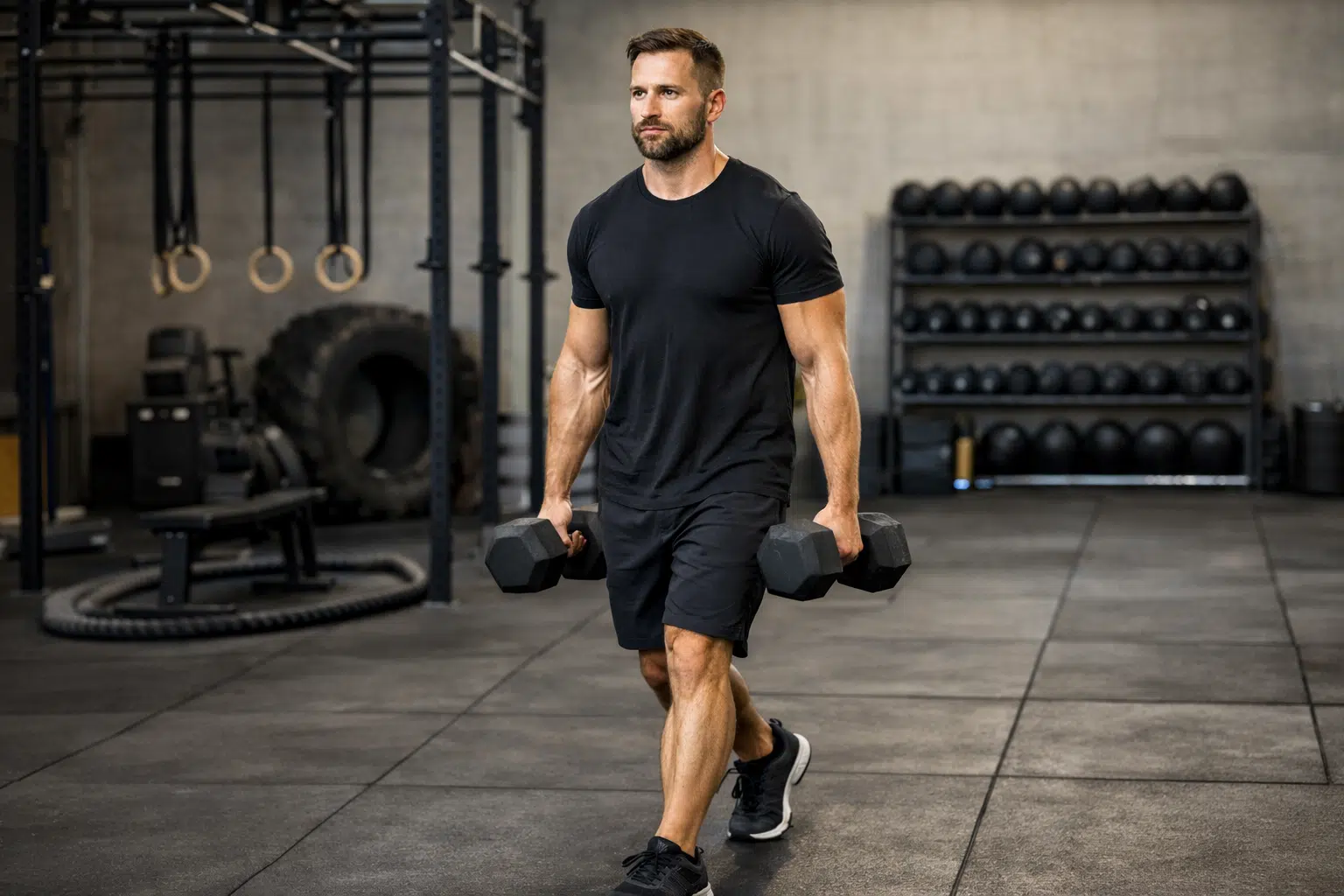Renforcement musculaire global: Le farmer walk est un exercice de force qui sollicite tout le corps en même temps. Les avant-bras travaillent pour tenir, les épaules et le dos stabilisent, la sangle abdominale verrouille, les jambes propulsent. Impossible de tricher : tout participe.